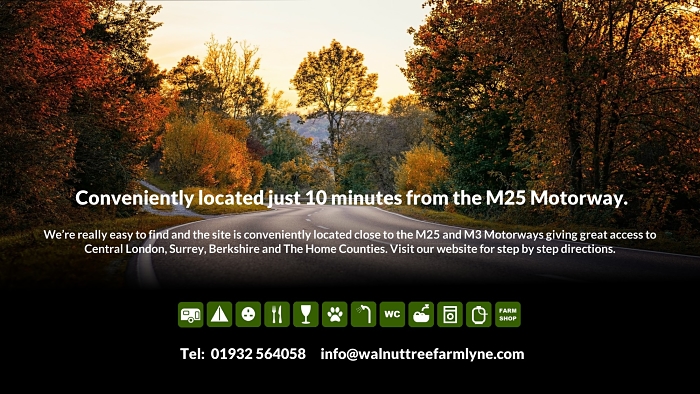 Located on Almners Road, Lyne, Chertsey, the site is secure and peaceful, and perfect for long or short term stays.